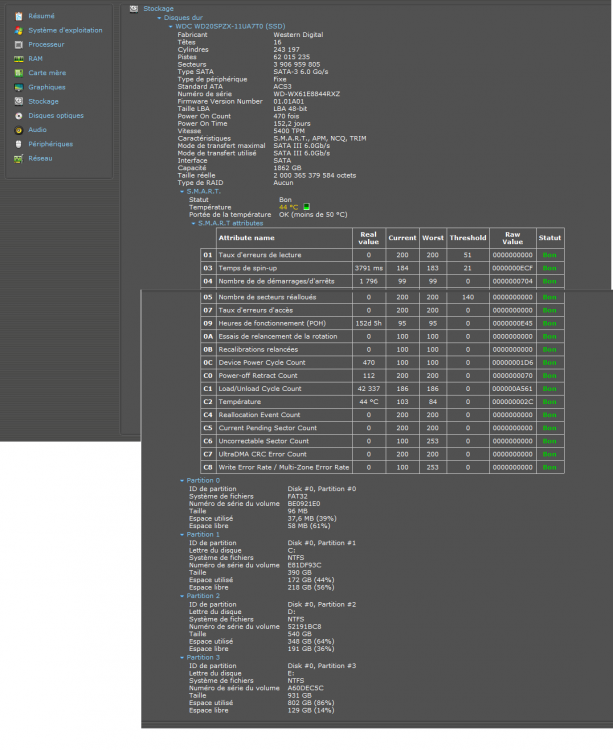 Bonjour, Il me semblait que le résultat de SPECCY ci-dessus / ci-dessous le donnait comme bon ?! Pour ce qui est de Dism /Online /Cleanup-Image /RestoreHealth le résultat est bon : -