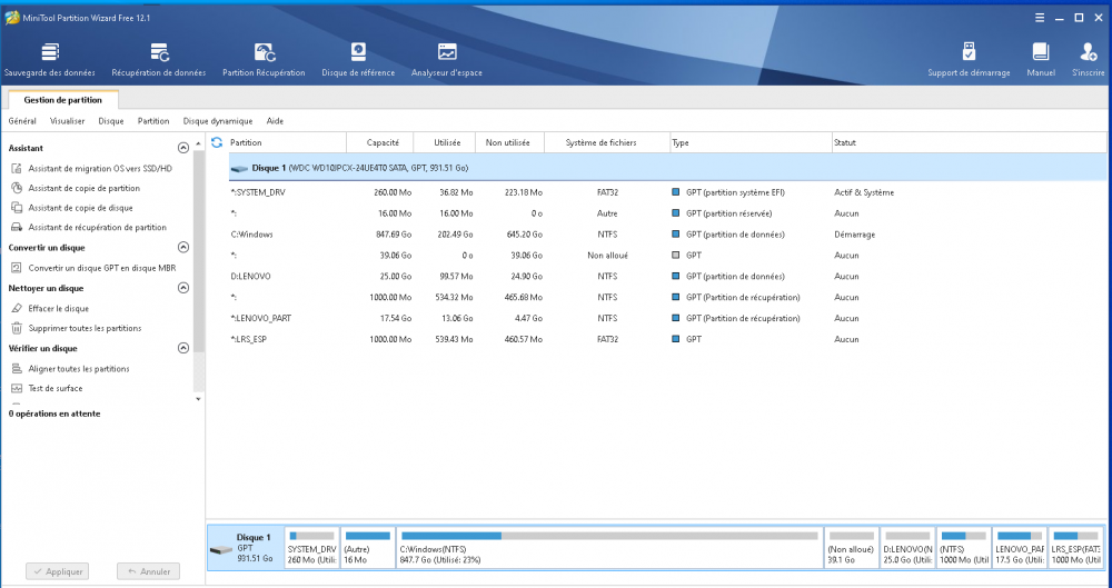 Bonsoir les crabeaux, J'ai désinstallé Avast et Malwarebites donc je roule sans antivurus ????? Ci-joint la capture faite avec mini tool partion. Ps: Si je retrouve cette satanée option de démarrage avancée, je débouche la bouteille de la photo ci-jointe. Voilà ma décision.