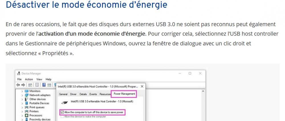Pour afficher les disques externes j'ai la solution mais je ne sais ce que ça vaut globalement, en tout cas ça marche sur mon pc : sur le site Ionos.fr il est dit que cela peut être dû à la gestion de l'economie d'énergie. C'est réglé pour moi (sauf que je sais pas encore comment enlever la présence de ceux dont j'ai affecté la lettre par diskmngmt qui ne sont plus branchés).