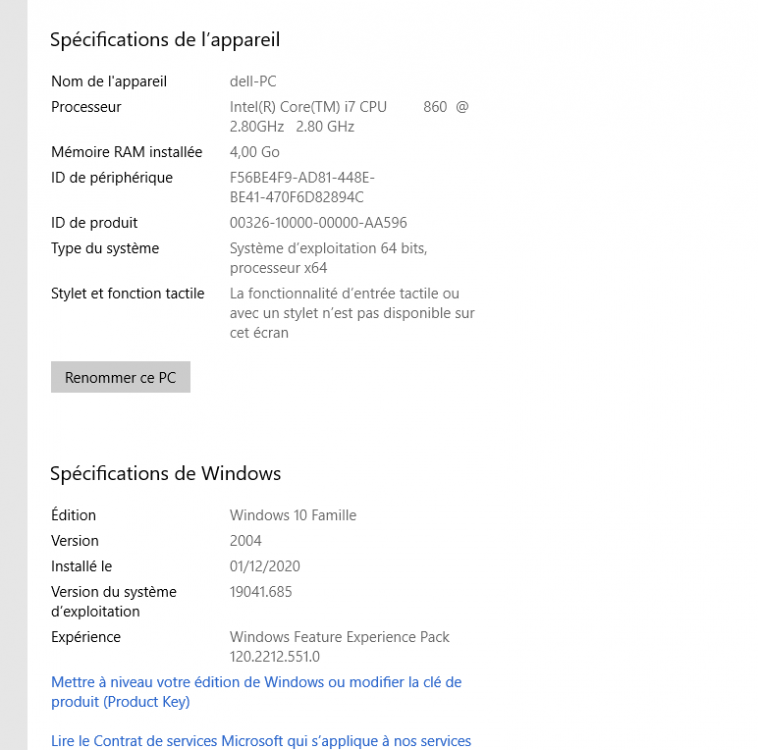 4. Je complète avec l'information système. Merci ToTo 61 et bonne recherche pour soigner mon covid informatique.