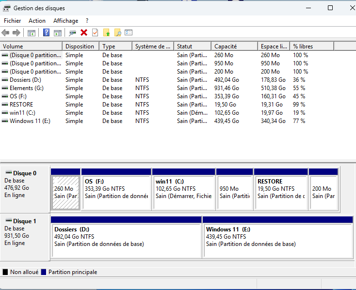 naif Posté(e) il y a 1 heure Posté(e) il y a 1 heure Bonjour, J'ai deux partition sur mon disque dur: Windows 10 et Windows 11. Aujourd'hui, après plusieurs mois d'utilisation de Windows 11 je souhaite supprimer la partition Windows 10 et affecter l'espace récupéré à la partition Windows 11. Je mets une capture de la gestion des disques en précisant que mon souhait est de supprimer OS F: et transférer sur C:Win 11 Cette opération est elle possible ? Merci pour vos réponses et votre aide Bonne journée