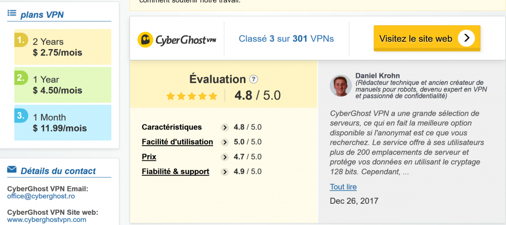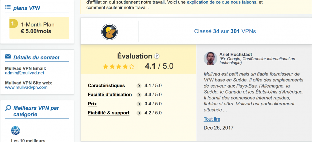 Yves B. Posté(e) le 26 décembre 2017 Posté(e) le 26 décembre 2017 (modifié) Salut @S@T, Si tu désires en savoir un peu plus sur « Mullvad » en tant que VPN, consultes ce SITE, qui fait des comparatifs avec quasiment tous les VPN disponibles. A+ Note de modération : Le site en lien (https://fr.vpnmentor.com) n'est pas fiable, est sponsorisé par des gros services VPN (ExpressVPN, NordVPN, PIA entre autres) et affirme ne pas l'être. En plus de mentir effrontément à ses lecteurs, le site propose des reviews de piètres qualités et biaisées (cf. mes messages ici et ici ) Modifié le 3 janvier 2018 par Mreve Note de modération